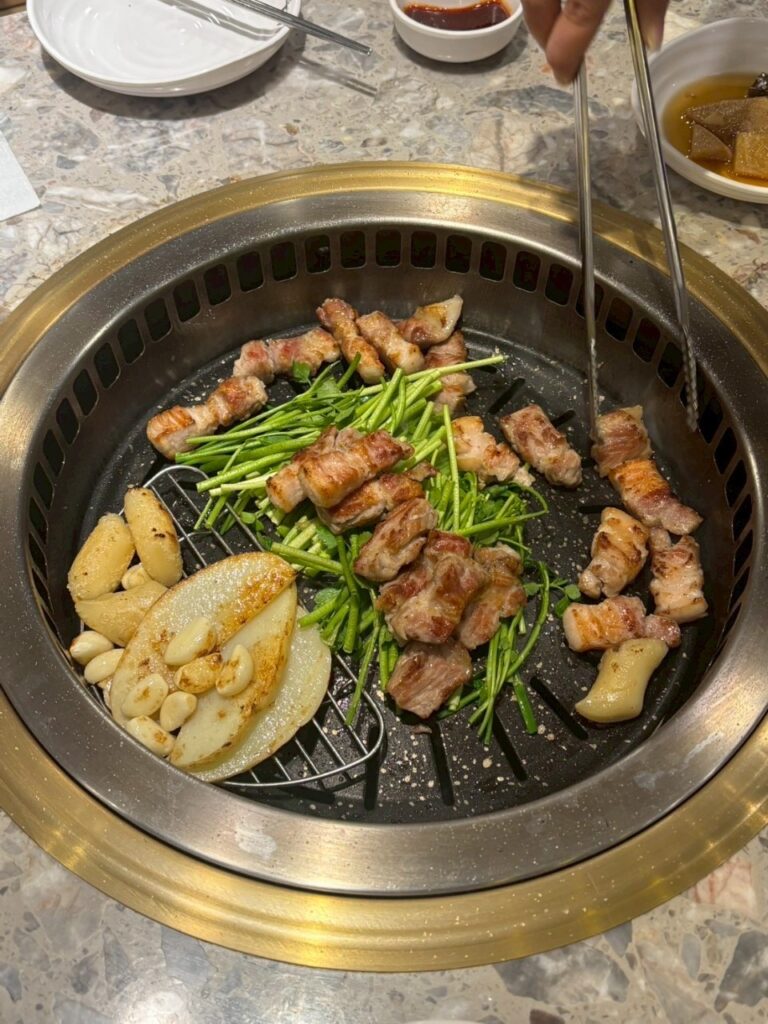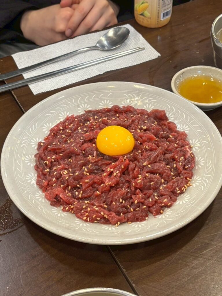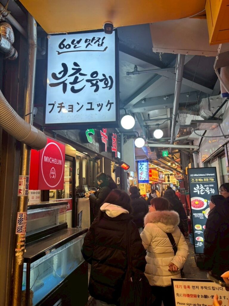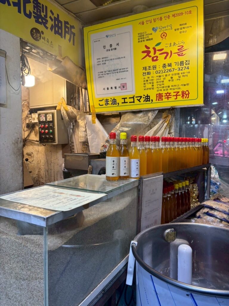 現地では、搾りたてのえごま油をその場で瓶詰めしてくれるえごま油のお店や、市場での食べ歩き、人気のタッカンマリ、トッポギ、ユッケ、サンナクチ、クァベギ、話題の塩パン、ドバイチョコ餅クッキーのドゥジョンク、王道のサムギョプサルなど、韓国グルメを満喫しました。